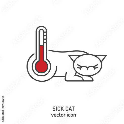 cat, disease, sick, ill, fever, high, treatment, temperature, pet, icon, kitten, animal, logotype, thin, web, simple, help, cat, patient, health care, line, home, pain, vet, thermometer, character, cute, felino, domestic, care, emergency, veterinary, healthy, outline, health, vet, symbol, signs, illustration, measurement, breed, vector, hospital, clinic, pictogram, cold, flu, disease, disease