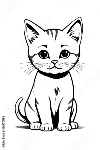 cat, sitting, white, background, wearing, collar, black, nose, animal, pet, cute, kitten, illustration, vector, cartoon, domestic, design, cat, art, drawing, felino, outline, fur, vignetting, line, graphic, funny, silhouette, happy, character, tail, cheerful, doodle, beautiful, icon, mammal, abstract, head, style, fluffy, smiling, adorable, friends, drawn, book, face, element, purr, purring