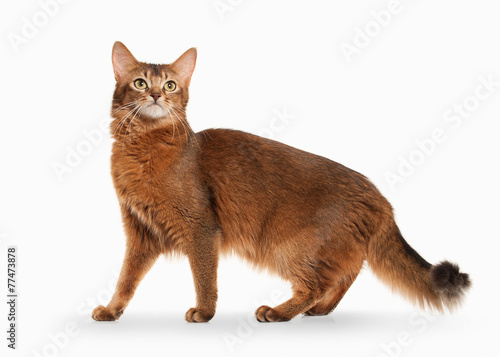 cat, background, beautiful, brown, camera, colours, cute, female, fluffy, fox, front, interested, isolated, kitten, look, lovely, male, 1, orange, ordinary, pet, portrait, purebred, red, relaxed, ruddy, serious, side, to sit, somali, studio, tail, turn, white, wild, young