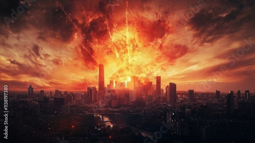 explosion, disaster, city, skyline, destruction, fire, smoke, chaos, nature, weather, urban, emergency, danger, dramatic, apocalyptic, cataclysm, landscape, cloud, energy, light, heat, devastation, building, environment, recovery, survival, impact, risk, tragedy, tumult, resilience, active, violent, scene, catastrophy, background, copy space, copy, space, copy space