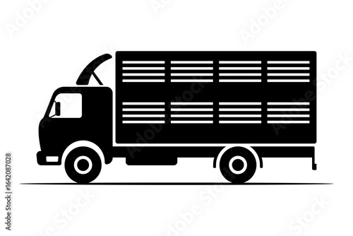 cattle, farm animal, truck, lorry, van, farm, agriculture, agricultural, big, black, animal, automobile, background, cage, car, cargo, container, cow, delivery, farming, flat, freight, heavy, horse, icon, industrial, industry, isolated, large, mammal, old, pictogram, pork meat, ranch, retro, rural, semi, shipping, side, signs, silhouette, simple, symbol, transport, transportation, vector, vehicle, vintage, white