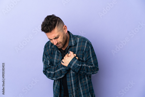 ache, adult, attack, background, body, cardiac, casual attire, caucasian, chest, disease, emergency, guy, hand, health, nubes, heartache, disease, injury, isolated, lumbar, male, medicals, man, painful, people, person, portrait, purple, sick, disease, slim, studio, suffering, touching, unhealthy, young, man, pain