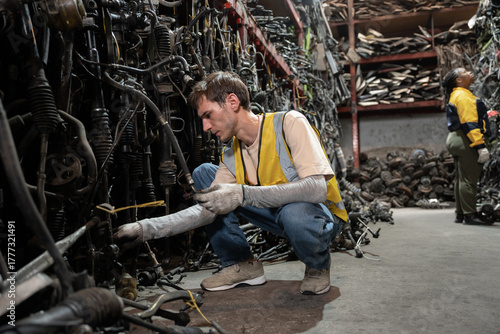 working, technician, work, automobile, engine, part, repair, workshop, car, shop, men at work, checking, check, inventory, motor, storage, automotive, spare, management, skill, storehouse, maintenance, steel, transport, center, machine, recycling, old, stock, spare part, job, caucasian, african, african american