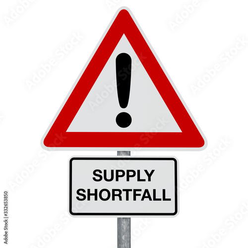 Caution Coronavirus - SUPPLY SHORTFALL - digitally generated image - clipping path included