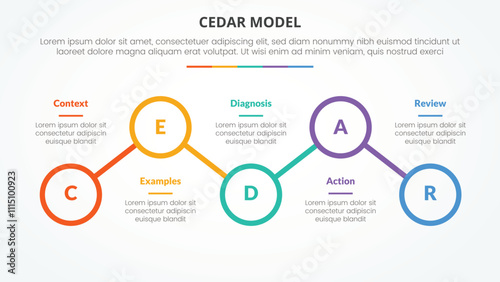 CEDAR feedback model infographic concept for slide presentation with outline circle line connection up and down with 5 point list with flat style