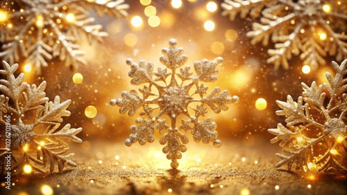 Celebrate the holiday spirit with a festive frame of snowflakes adorned with twinkling lights on a shimmering golden backdrop, inspiring warmth and joy this Christmas.