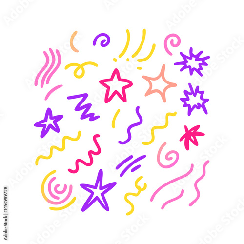 confetti, celebration, party, serpentine, star, background, doodle, vector, abstract, fun, colourful, holiday, decoration, design, festive, birthday, event, carnival, burst, graphic, illustration, drawing, vignetting, pink, purple, yellow, orange, black, modern, stylish, trendy, vibrant, hand-drawn, cartoon, cute, simple, decorative, element