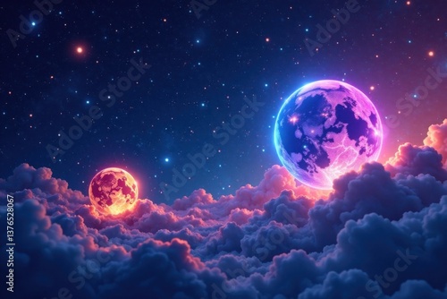 Celestial spheres with glowing auras floating amidst starry night sky , cosmic, astronomy