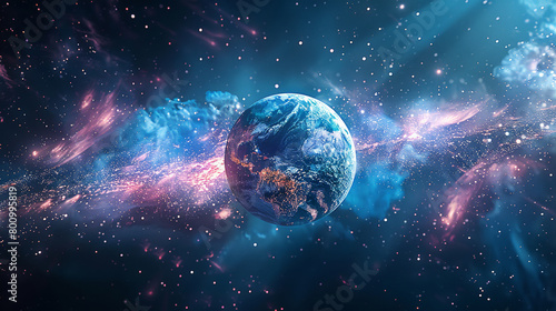 Celestial waltz of Terra.Terra in the Embrace of the Nebulous Veil.