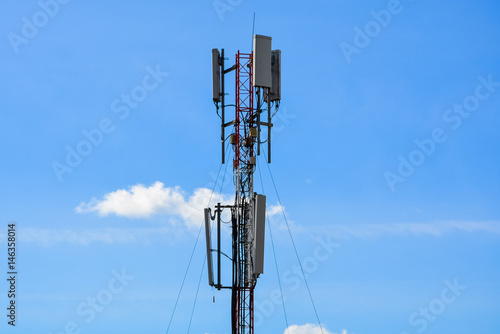 Cell phone tower, Wifi tower, Telecommunication tower in blue sky background.