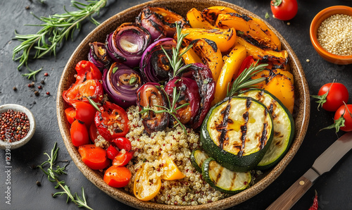 Ceramic Dish with Grilled Vegetables and Quinoa, A Healthy and Delicious Meal for Any Time of Day