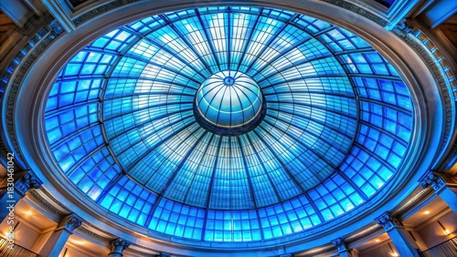 glasses, dome, architecture, serene, bright, modern, peaceful, interior design, cerulean, blue, glowing, calm, luxury, lighting
