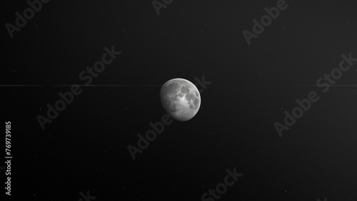 CGI spectacular illustration of a lunar eclipse, with a bright beam of light radiating from behind