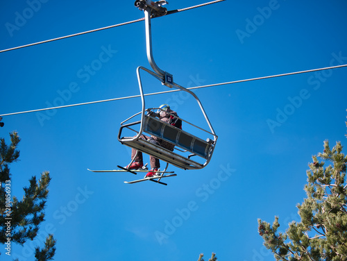 Chairlifts that go to the top of the ski resort so that skiers and snowboarders can start the descent of the slope. Concept snow, sport, resort, winter.