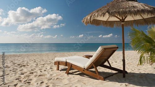 Chairs on the sandy beach near the sea. Summer holiday and vacation concept for tourism. Inspirational tropical landscape.