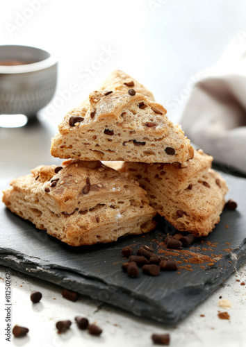 Chai-spiced Scones on slate tile, isolated on white background. Traditional Scones. Dessert.