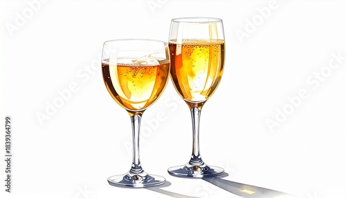 Champagne Flutes with Golden Sparkling Wine Against White Background in Elegant Celebration Scene