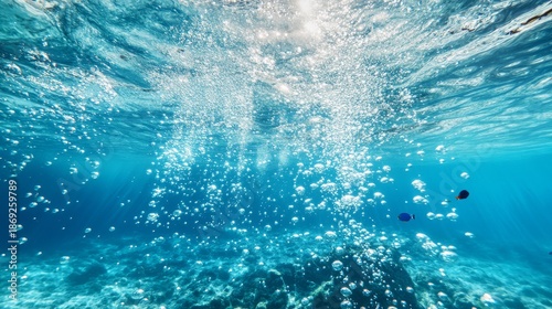 trail, tiny, bubble, suspended, maldivian, lagoon, gradient, blue, aquamarine, deep, cobalt, visible, water, surface, tension, ripple, scattered, colourful, fish, professional, underwater, lighting, capturing, semitransparent, bubble, texture