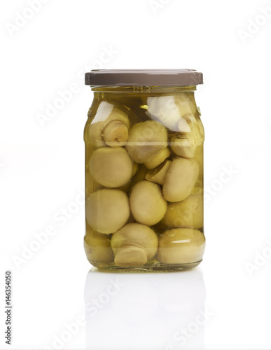 champignon, mushroom, jar, preserve, food, stored, vegetable, glasses, green, legume, snack, isolated, canned, pickled, tenable, vegetarian, reflex, release, pickled