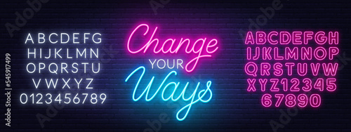 Change Your Ways neon quote on brick wall background.