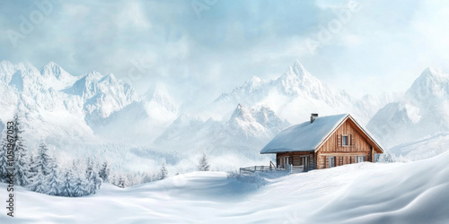 Charming Cabin in a Serene Snowy Landscape: A Winter Wonderland Retreat