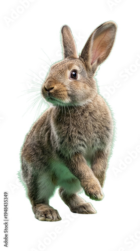 rabbit, rabbit, hare, cute, adorable, pet, fluffy, brown, grey, curious, standing, alert, isolated, cut-out, studio shot, wildlife, nature, farm animal, spring, easter, innocence, small, delicate, ear, whisker, tail, eye, dynamic, movement, purity, growth, sweetness, domestic, mammal, portrait, cautious, wild