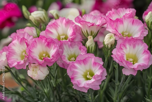 Charming Pink and White Lisianthus Flowers in Full Bloom CloseUp