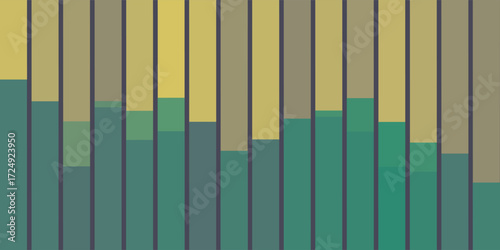Chart like geometric design with vertical yellow, brown and green rectangles, bars on a dark background. Modern minimal design, perfect for digital art, creative projects, and contemporary decoration.