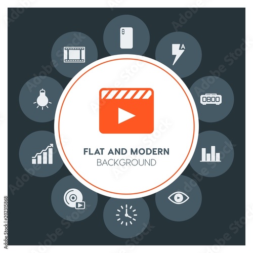 motion picture, film, cinema, entertainment, theatre, video, technology, view, clock, time, hours, watch, minute, player, cd, music, play, chart, diagram, bar, graph, growth, bulb, light, lamp, light bulb, vector, icon, symbol, document, lightning, camera, phone, two-story, device, digital, alarm, morning, business, background, popcorn