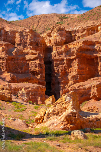 Charyn Canyon, Valley of Castles. The excellence of Kazakhstan. Panorama of natural unusual landscape. The red canyon of extraordinary beauty looks like a Martian landscape.