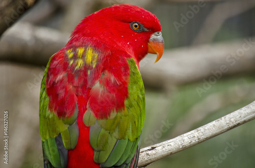 lory, parrot, red, green, closeup, bird, backview, wing