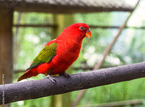 Chattering lory (Lorius garrulus) parrot sitting on branch
