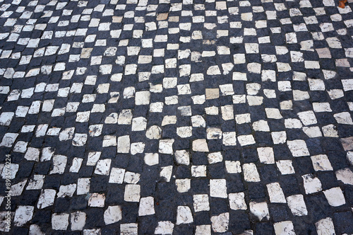Checked Pattern in Mosaic Paving Tiles in Sintra, Portugal.