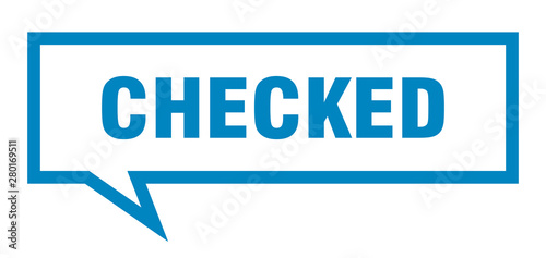 checked sign. checked square speech bubble. checked