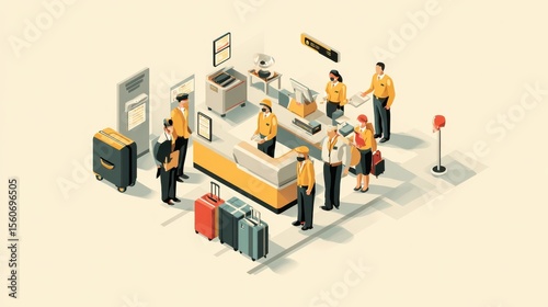 Checking baggage and people, security service isometric vector illustration, no logos, no brands