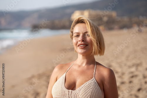 woman, smiling, cheerful, beach, enjoyment, summer, vacation, coast, portrait, blonde hair, short hair, young, seacoast, shore, carefree, summer getaway, positivity, freedom, sunny, scenic, travel, sand, breeze, face, trendy, holiday, holiday maker, attractive, relaxation, lifestyle, beautiful, leisure, one person, daytime, closeup, happy, outdoors, blurred background