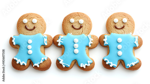 gingerbread, row, three, children, party, festive, cookie, shot, christmas, treat, smiling, holiday, icing, decorated, sweet, food, baked, homemade, delicious, snack, sugar, blue, white, cute, happy, bakery, dessert, confectionery, isolated, background, studio, top, view, pattern, winter