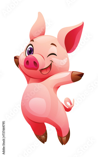pig, animal, cheerful, happy, character, cute, farm, adorable, agriculture, background, cartoon, cheek, children, comic, design, domestic, drawing, fat, flat, friendly, fun, funny, graphic, happiness, illustration, isolated, jump, children, little, farm animal, lovely, mammal, mascot, nature, pet, baby pig, baby pig, pink, fats, pork meat, pose, smile, snout, sweet, swine, vector, white, young