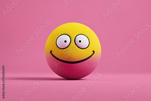 Cheerful Smiley Face Ball with Gradient Color and Shadow on Pink Background.