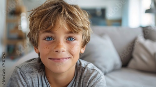 boy, children, portrait, smiling, happy, joyful, expression, face, indoor, home, casual attire, lifestyle, candid, natural, authentic, genuine