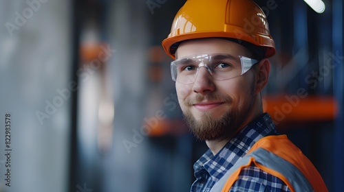 Cheerful Young Industrial Worker in Safety Gear on Job Site