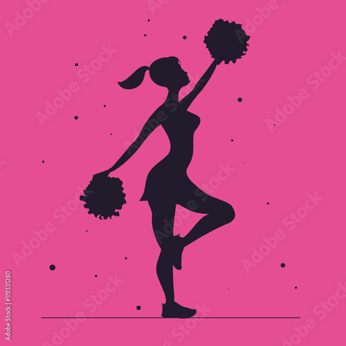 Cheerleader. Vector silhouette on a pink background. Cheerleader