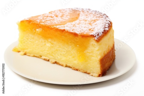 white background, food and drink, single object, sponge cake, studio shot, background, cheesecake, still life, sweet food, freshness, closeup, isolated, custard, cut-out, dessert, yellow, baked, bread, plate, slice, table, white, bolas, cake, dish, flan, food, com