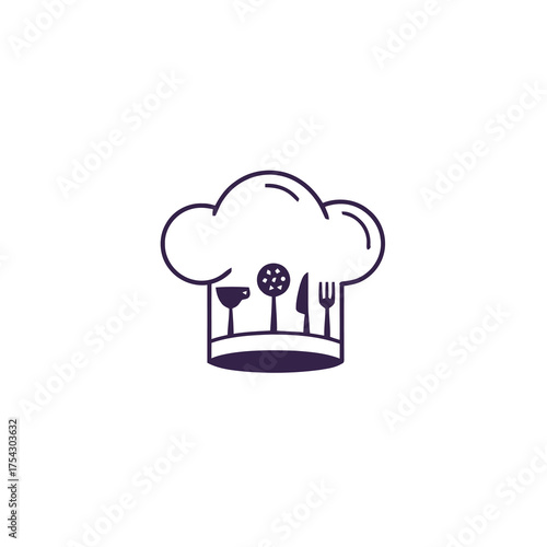 Chef's Hat Illustration Culinary Symbol with Cutlery, Wine Glass and Design Elements