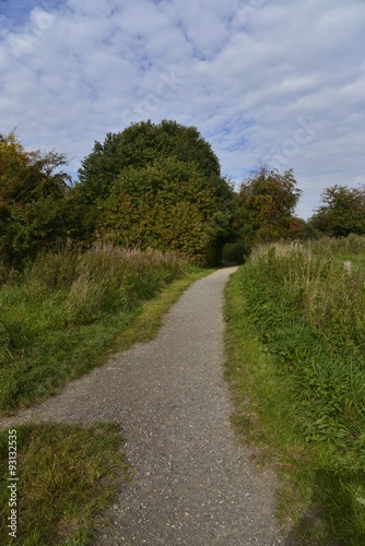 Chemin en cailloux traversant la nature sauvage du bois de Scheutbos à Molembeek