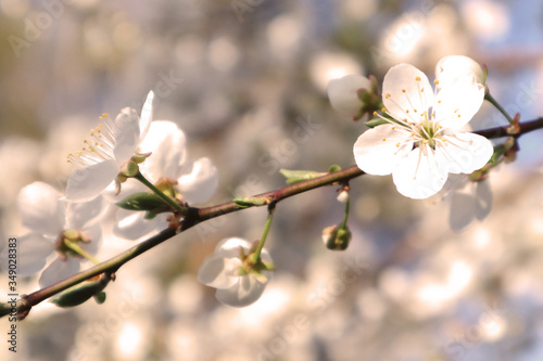 Cherry blossom, tree branches flowering. Spring and beauty concept. Selective focus.