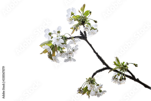 cherry, twig, flower, isolated, tree branch, apple, pear, background, bloom, blooming, blossom, bright, closeup, decoration, delicate, detail, east, element, floral, fragment, fresh, fruit, leaf, natural, nature, plant, ripen, spring, studio, tree, warm, white