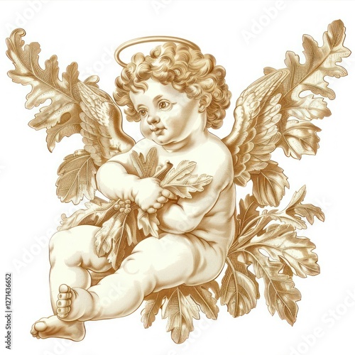 angel, leaf, illustration, cherub, background, drawing, children, colours, person, classic, vintage, design, art, graphic, cupid, baby, face, decorative, heavenly, artwork, baroque, elegant, human, wing, head, oak, flats, shading, detailed, isolated, halo, center, divine, figure, style, being, archangel, religious, iconography, baroque style