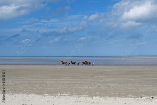 chevaux sur la plage de la réserve naturelle de la baie de saint brieuc