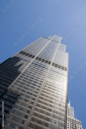 chicago, illinois, day, outdoors, architecture, building exterior, skyscraper, modern, business building, clear sky, blue, american culture, no people, window, glasses, sunlight, vertical